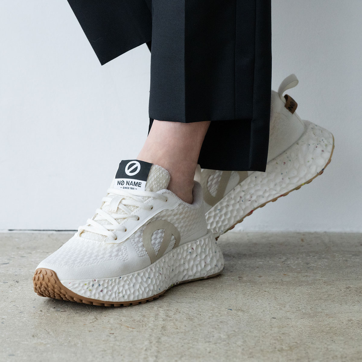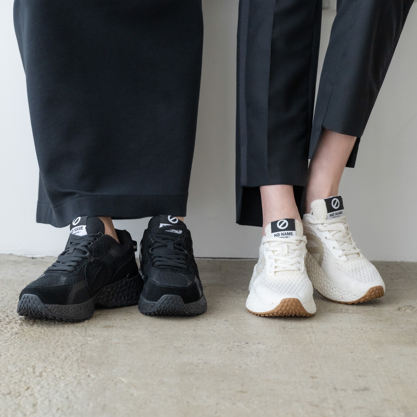 「just shoes」というコンセプトのもとに「名前のない」ブランドとしてスタートし、欧米で爆発的な人気となり社会現象を生み出したフランス生まれのノーネーム。独自のフォルムと厚いソールの絶妙な重量感が快適な履き心地と着用時にヒップラインを美しく見せる効果をあわせ持つことから大人の女性のカジュアルアイテムの代名詞的存在として愛され、支持され続けています。