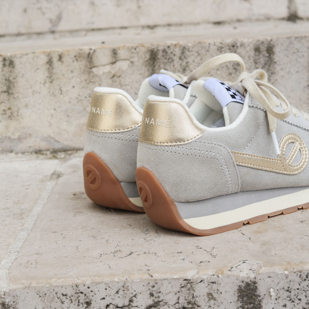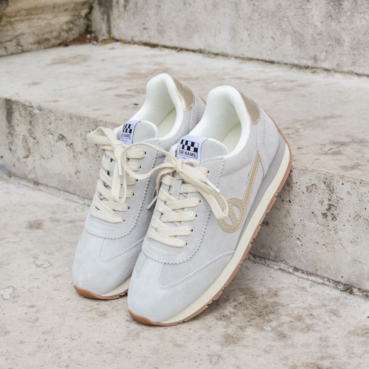 「just shoes」というコンセプトのもとに「名前のない」ブランドとしてスタートし、欧米で爆発的な人気となり社会現象を生み出したフランス生まれのノーネーム。独自のフォルムと厚いソールの絶妙な重量感が快適な履き心地と着用時にヒップラインを美しく見せる効果をあわせ持つことから大人の女性のカジュアルアイテムの代名詞的存在として愛され、支持され続けています。