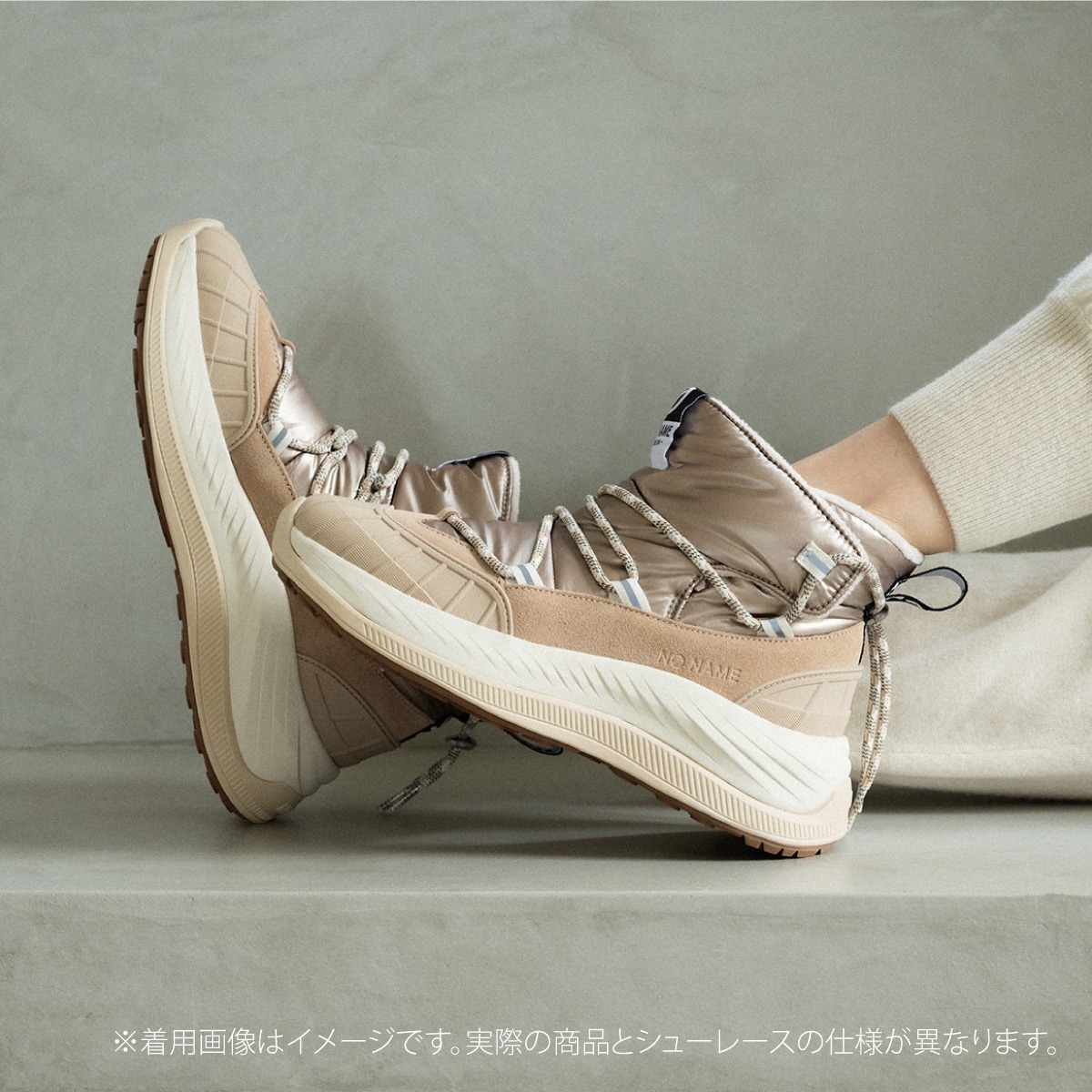 「just shoes」というコンセプトのもとに「名前のない」ブランドとしてスタートし、欧米で爆発的な人気となり社会現象を生み出したフランス生まれのノーネーム。独自のフォルムと厚いソールの絶妙な重量感が快適な履き心地と着用時にヒップラインを美しく見せる効果をあわせ持つことから大人の女性のカジュアルアイテムの代名詞的存在として愛され、支持され続けています。