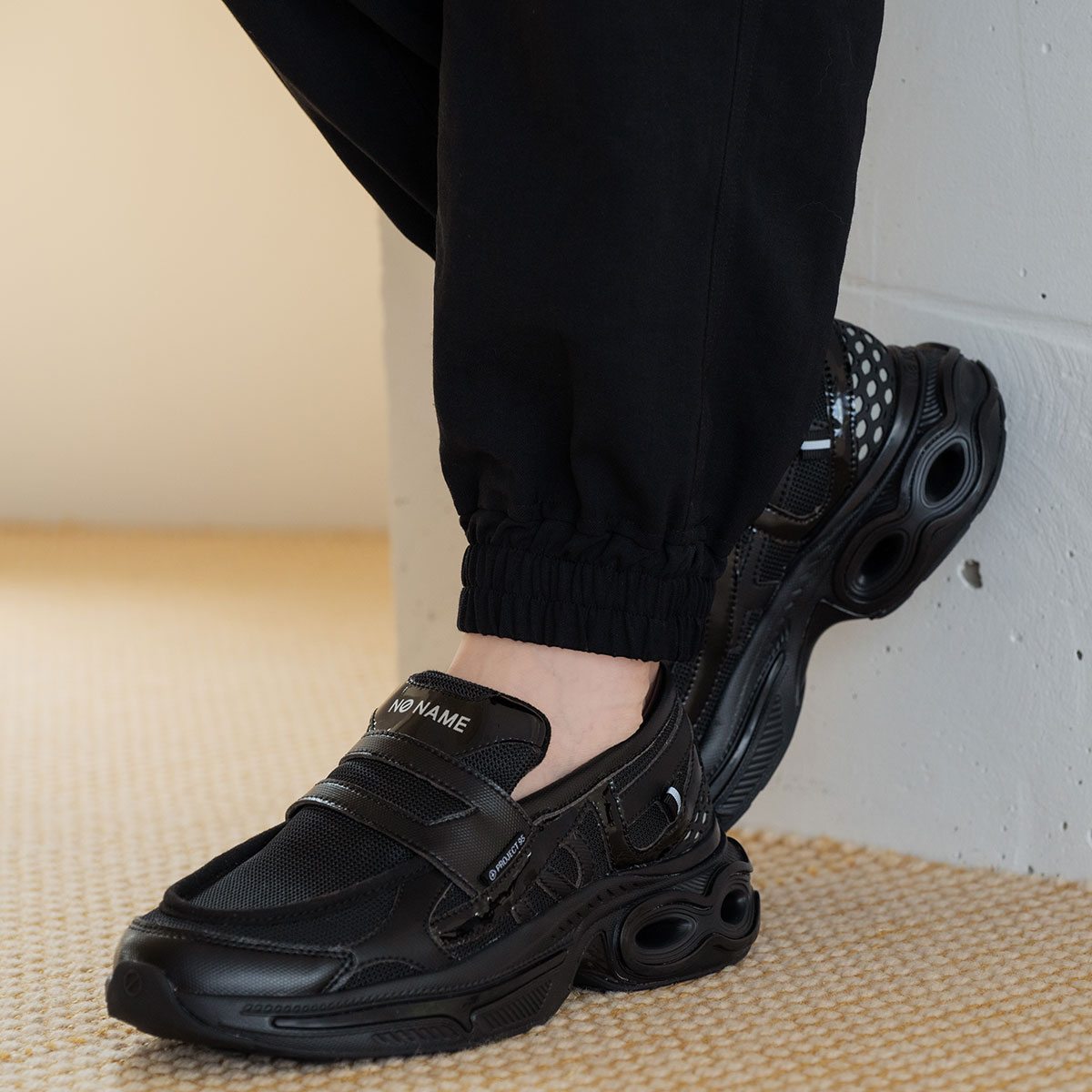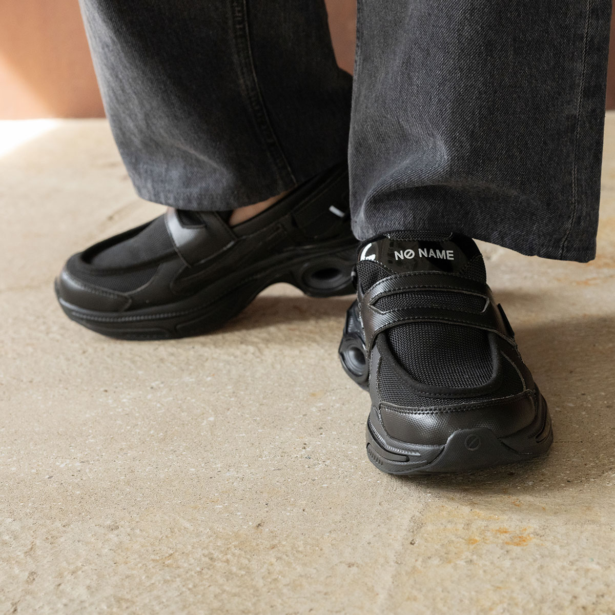 「just shoes」というコンセプトのもとに「名前のない」ブランドとしてスタートし、欧米で爆発的な人気となり社会現象を生み出したフランス生まれのノーネーム。独自のフォルムと厚いソールの絶妙な重量感が快適な履き心地と着用時にヒップラインを美しく見せる効果をあわせ持つことから大人の女性のカジュアルアイテムの代名詞的存在として愛され、支持され続けています。