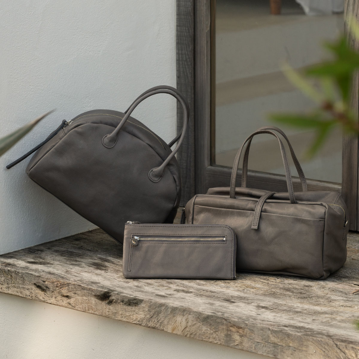 ※レ バジックのレザーコレクションは、洗いをかける特殊加工により、柔らかな手触りとヴィンテージ感のある風合いを引き出しているため、表面にシワ感や陰影が見られる場合がございます。