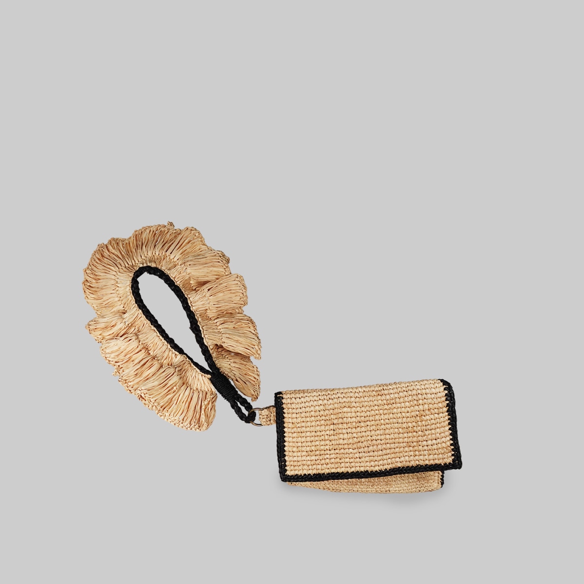 細やかに編み上げられたラフィア素材がシックな印象を添え、必要最低限の荷物を入れてアクセサリー感覚でお使いいただけます。