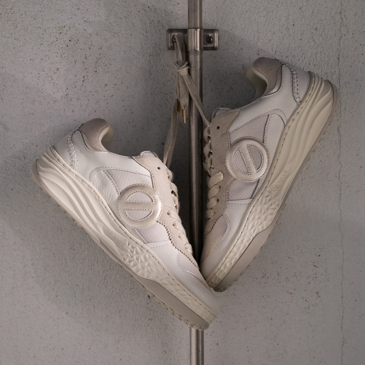 「just shoes」というコンセプトのもとに「名前のない」ブランドとしてスタートし、欧米で爆発的な人気となり社会現象を生み出したフランス生まれのノーネーム。独自のフォルムと厚いソールの絶妙な重量感が快適な履き心地と着用時にヒップラインを美しく見せる効果をあわせ持つことから大人の女性のカジュアルアイテムの代名詞的存在として愛され、支持され続けています。