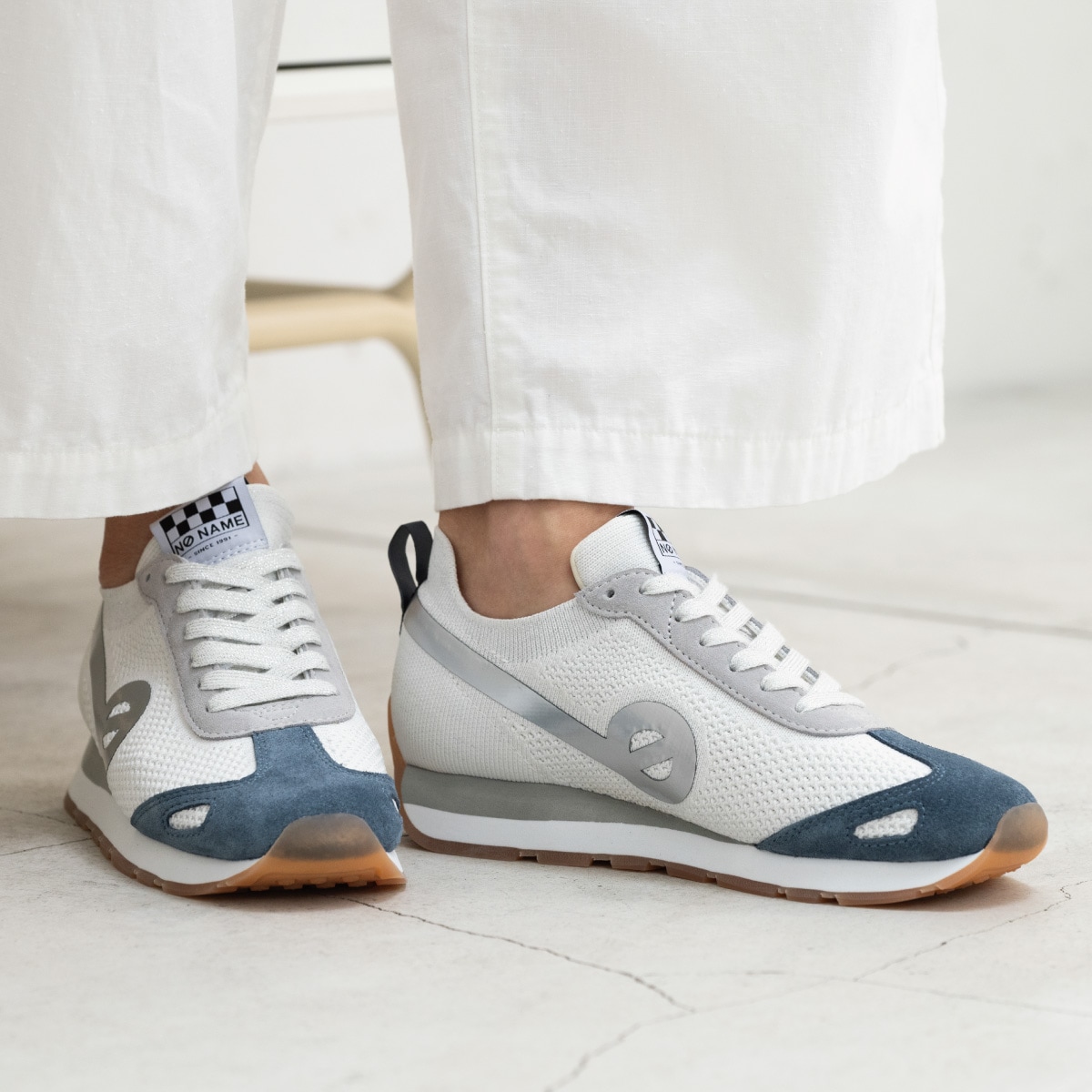 「just shoes」というコンセプトのもとに「名前のない」ブランドとしてスタートし、欧米で爆発的な人気となり社会現象を生み出したフランス生まれのノーネーム。独自のフォルムと厚いソールの絶妙な重量感が快適な履き心地と着用時にヒップラインを美しく見せる効果をあわせ持つことから大人の女性のカジュアルアイテムの代名詞的存在として愛され、支持され続けています。