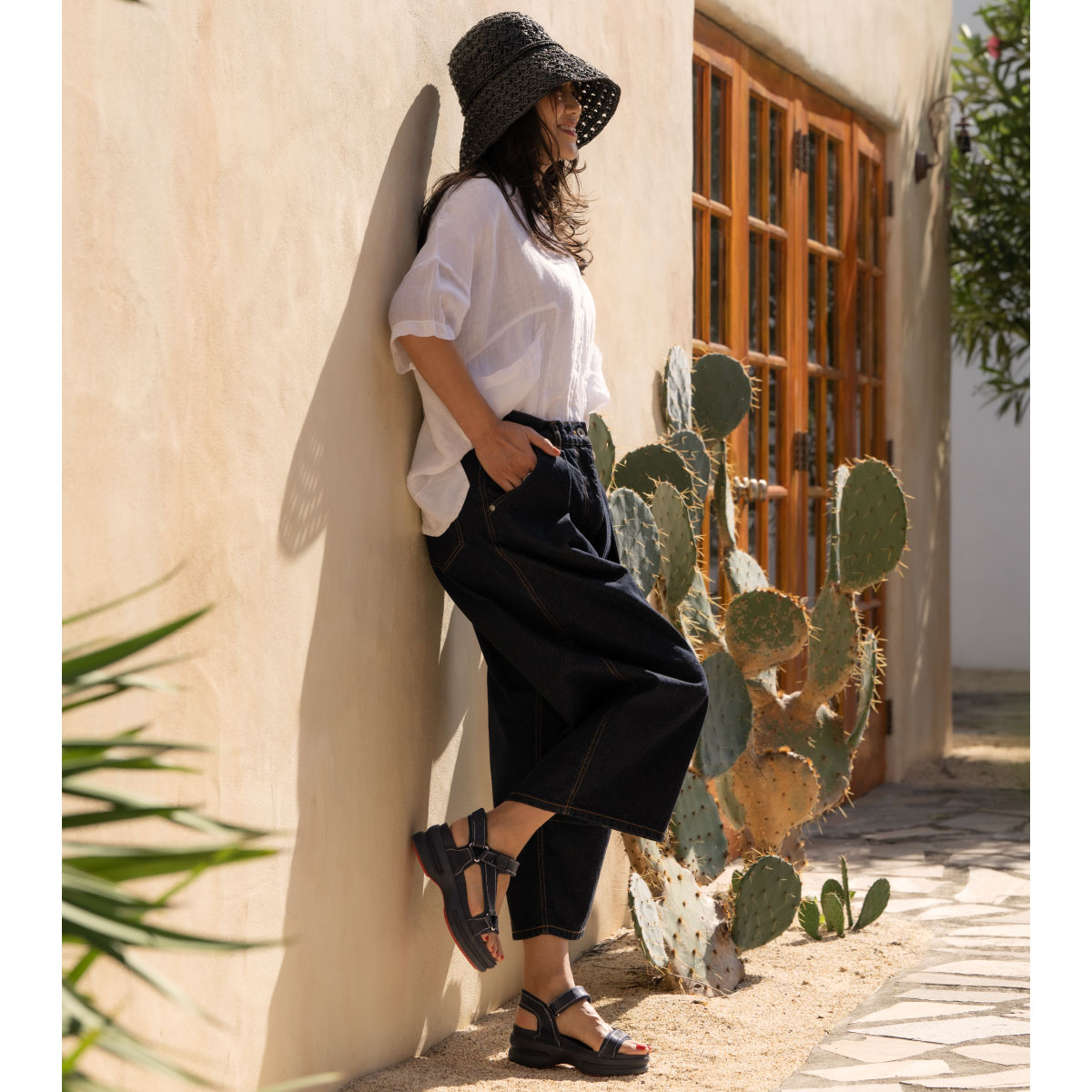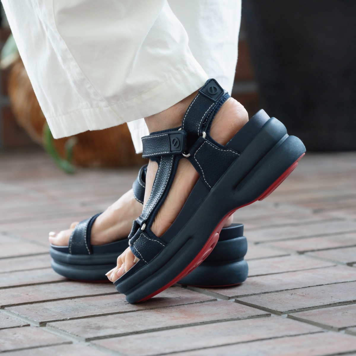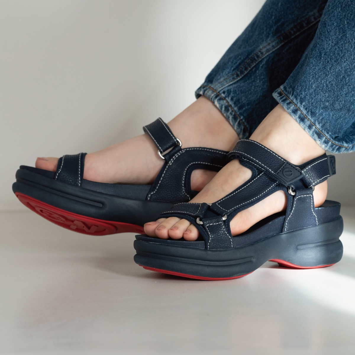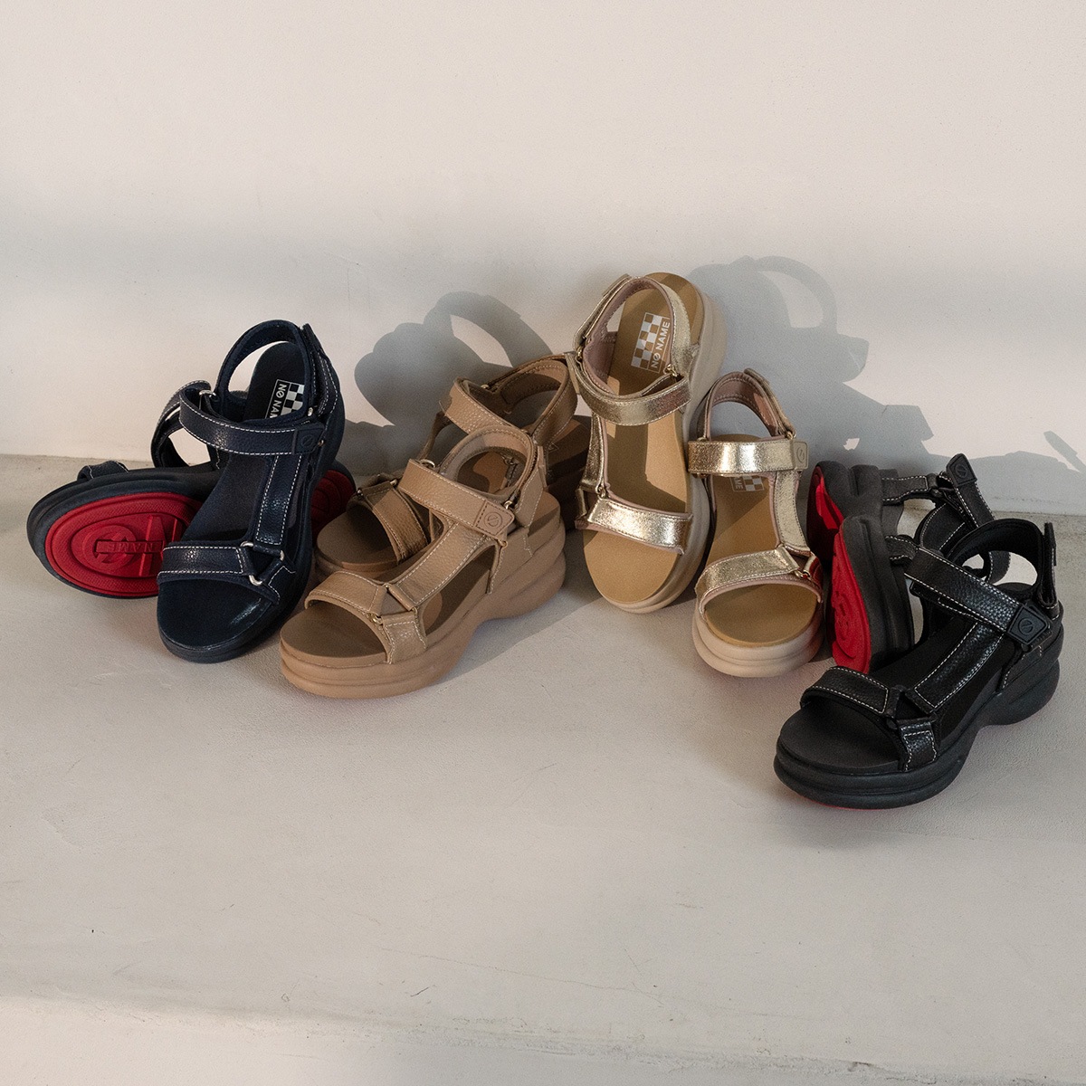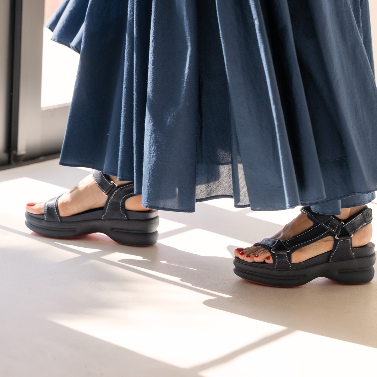 かかとと甲の2箇所にベルクロのストラップがあるので、サイズ調整が簡単にでき、足をしっかりホールドするデザインなので歩きやすいのが最大の魅力。