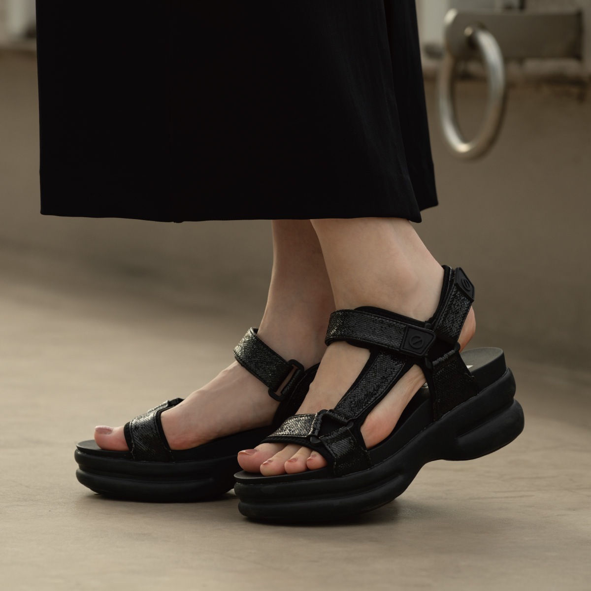 かかとと甲の2箇所にベルクロのストラップがあるので、サイズ調整が簡単にでき、足をしっかりホールドするデザインなので歩きやすいのが最大の魅力。