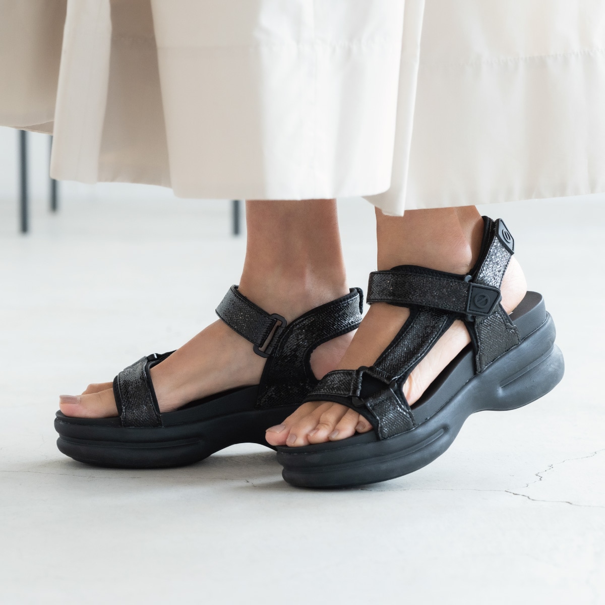 また、軽量でクッション性のあるソールなので長時間歩いても疲れにくいのも特徴。 さらに、6.5cmのソール高があるので美脚効果も◎。 春夏のコーディネートの主役級サンダルです。