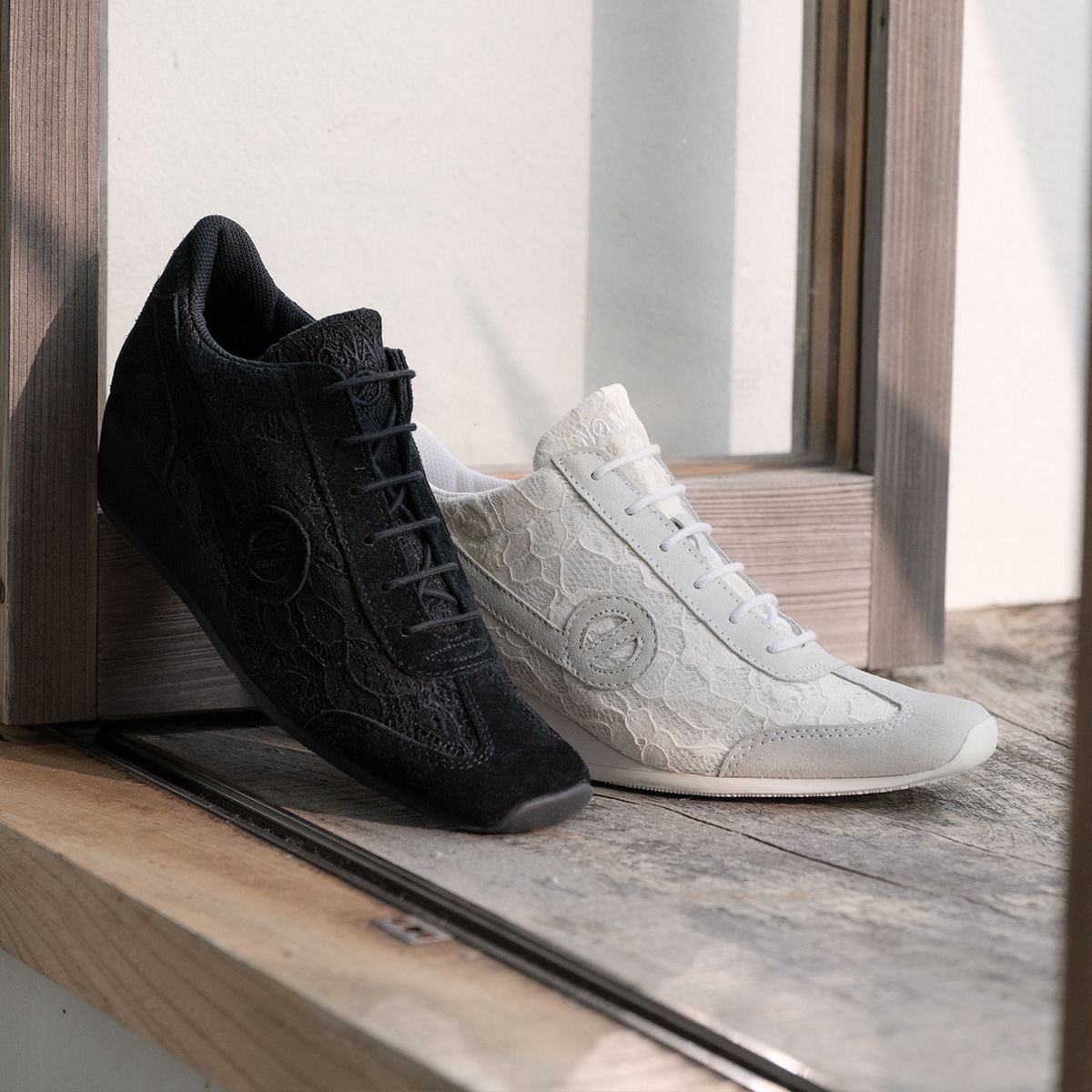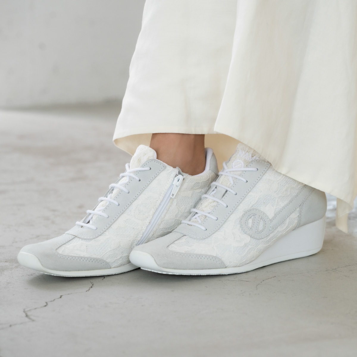 レース素材サイドジップ付きウェッジソールスニーカー