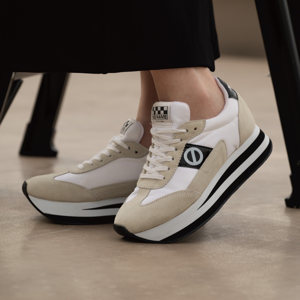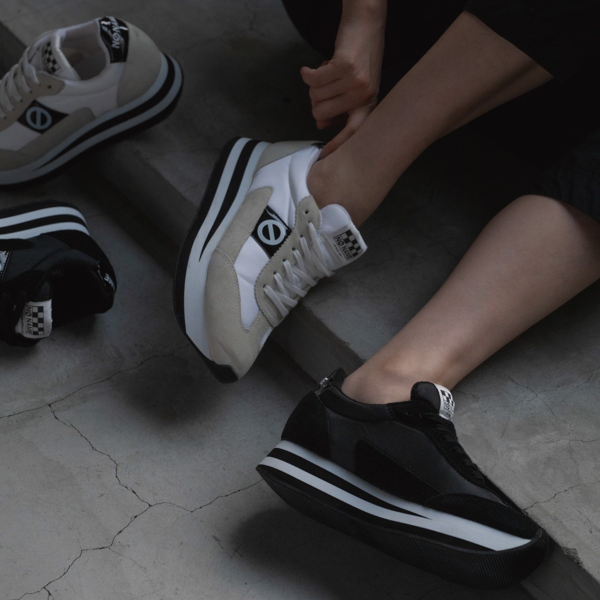 「just shoes」というコンセプトのもとに「名前のない」ブランドとしてスタートし、欧米で爆発的な人気となり社会現象を生み出したフランス生まれのノーネーム。独自のフォルムと厚いソールの絶妙な重量感が快適な履き心地と着用時にヒップラインを美しく見せる効果をあわせ持つことから大人の女性のカジュアルアイテムの代名詞的存在として愛され、支持され続けています。