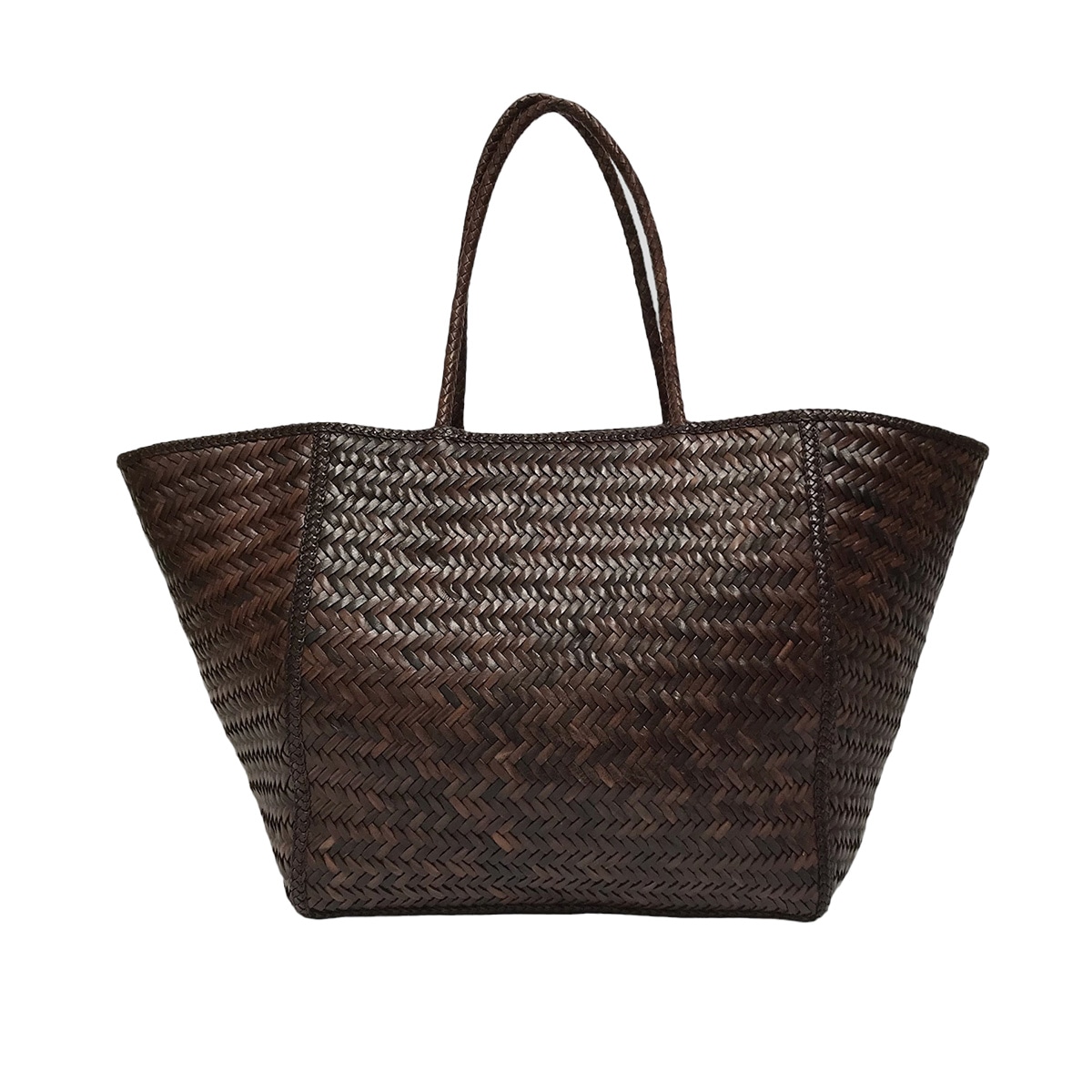 外側は職人が手編みしたバッファローレザーで、高級感のある編み目が魅力。